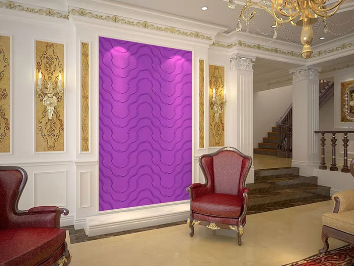 PVC 3D-seinäpaneelit ovat ydinraaka-aineena polyvinyylikloridihartsista (PVC) valmistettuja komposiittipaneeleja, joista muodostetaan kolmiulotteinen kohokuvio, gradienttitekstuuri tai dynaamiset valo- ja varjoefektit 3D-tulostuksen tai CNC-kaiverrustekniikan avulla. Pinnalla on UV-kovettuva pinnoite tai erittäin tarkka siirtotekniikka, joka simuloi puun, kivisyyn, metallin jne. luonnollista rakennetta, ja sillä on vedenpitävä ja kosteudenkestävä, paloa hidastava, kevyt ja korkea lujuus. Se sopii korkealuokkaisiin hotelleihin, kaupallisiin tiloihin, taidenäyttelytiloihin ja muihin kohtauksiin, ja se on innovatiivinen vaihtoehto perinteisille koristemateriaaleille.