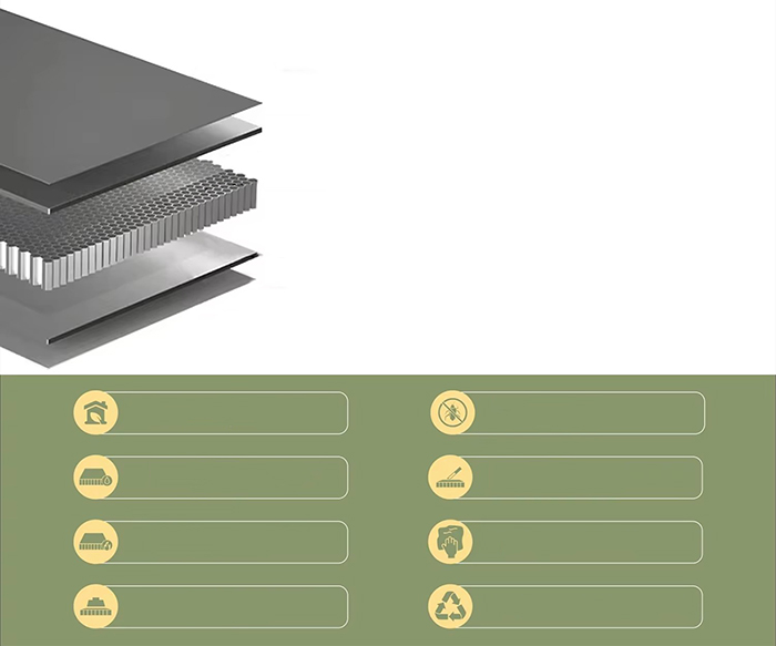 Alumiiniset hunajakennopaneelit ovat komposiittipaneeleja, joiden pintakerroksena on lujat alumiiniseospaneelit ja sisään upotettu kuusikulmainen alumiinikennomainen ydinmateriaali. Hunajakennomainen ydinrakenne on yhdistetty tiiviisti paneeliin liimojen avulla muodostaen kevyen ja erittäin jäykän kokonaisuuden. Pinta on ruiskutettu fluorihiili- tai puusyiden siirtoteknologialla, joka yhdistää metallirakenteen ja luonnollisen rakenteen, jolla on superkorroosionkestävyys, lämmöneristys, äänieristys ja iskunkestävyys, ja se soveltuu sisä- ja ulkosisustukseen, verhoseiniin, kattoihin ja muihin kohtauksiin. Se on korkean suorituskyvyn materiaali korvaamaan perinteiset alumiinipaneelit, kivi ja puu.