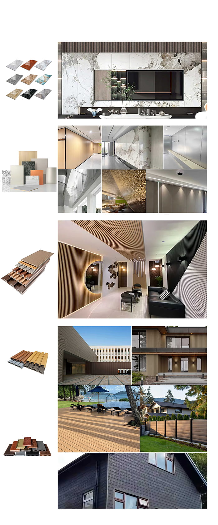 Päätuotteitamme ovat: PVC-kattopaneelit, PVC-seinäpaneelit, WPC-seinäpaneelit, kuumaleimauskalvot, PVC-laminointikalvot, SPC-lattiat, WPC-terassit ja muut niihin liittyvät tuotteet. Vuosittainen myyntimme voi nousta jopa 35 miljoonaan USD.