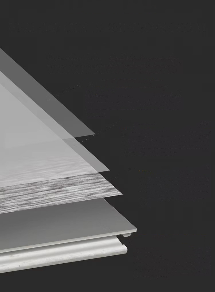 Materiaali Polyvinyylikloridi (PVC) hartsijauhe kalsiumkarbonaattijauhe (CaCO₃) Kulutusta kestävä kerros (UV/värikalvo)