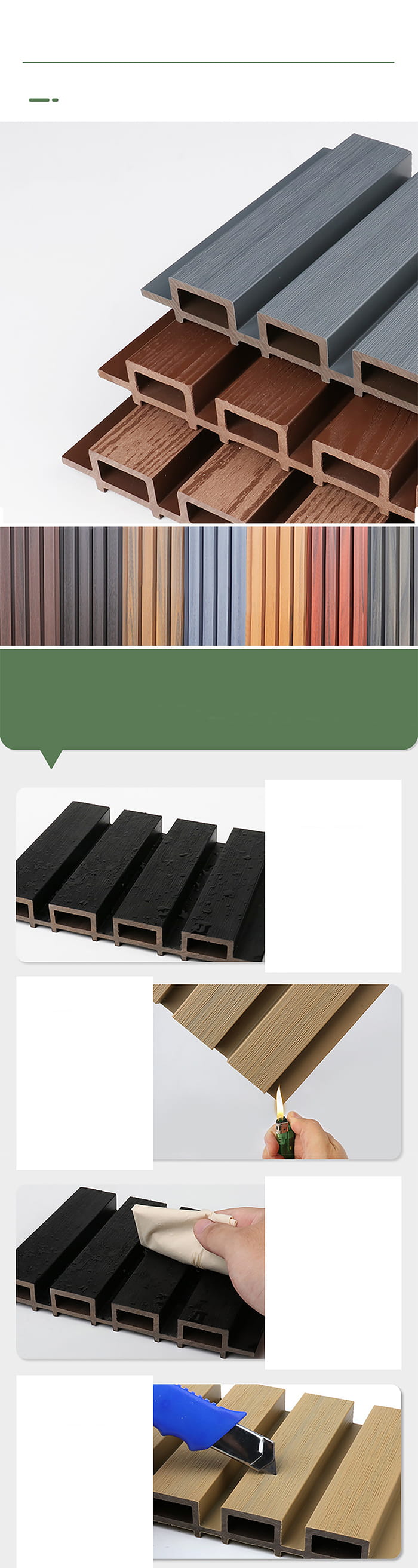 Laaduntarkastus: Tuotantoprosessin aikana WPC-ulkopaneelien laatu tarkastetaan tiukasti, mukaan lukien mittatarkkuus, tasaisuus, tiheys, palonkestävyys, ympäristönsuojelun suorituskyky jne.