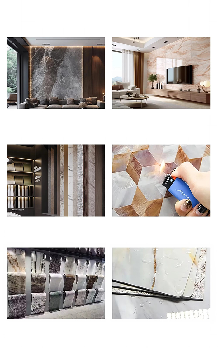 Asuntojen sisustus: Sitä voidaan käyttää seinien koristeluun olohuoneissa, makuuhuoneissa, keittiöissä, kylpyhuoneissa, parvekkeissa jne. Se voi jäljitellä luonnollisten materiaalien, kuten puun ja kiven syyn, rakennetta, lisätä luonnon kauneutta ja antaa äänieristyksen.