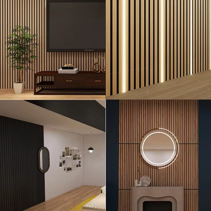 WPC ääntä vaimentava levy on ympäristöystävällinen ääntä vaimentava koristemateriaali, joka on valmistettu puu-muovi-komposiittimateriaaleista. Se käyttää ekologisen puun käsittelytekniikkaa, jossa on urat edessä ja reikiä pohjamateriaalin takana, jotka muodostavat viiltoresonanssiääntä vaimentavan rakenteen. Tämä muotoilu tekee WPC-ääntä vaimentavasta levystä paitsi hyvän äänenvaimennuskyvyn, myös vedenpitävän, kosteudenkestävän, hyönteissuojatun, termiitinkestävän ja muut ominaisuudet. Sen pinta voidaan koristella luonnollisilla puusyillä tai useilla eri väreillä, jotta saadaan monipuolisia visuaalisia tehosteita.